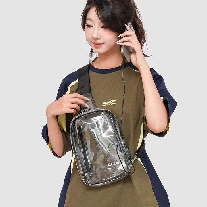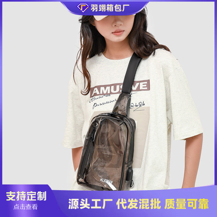 Outer single transparent small bag women's 2025 new niche design foreign style shoulder messenger bag versatile casual breast bag