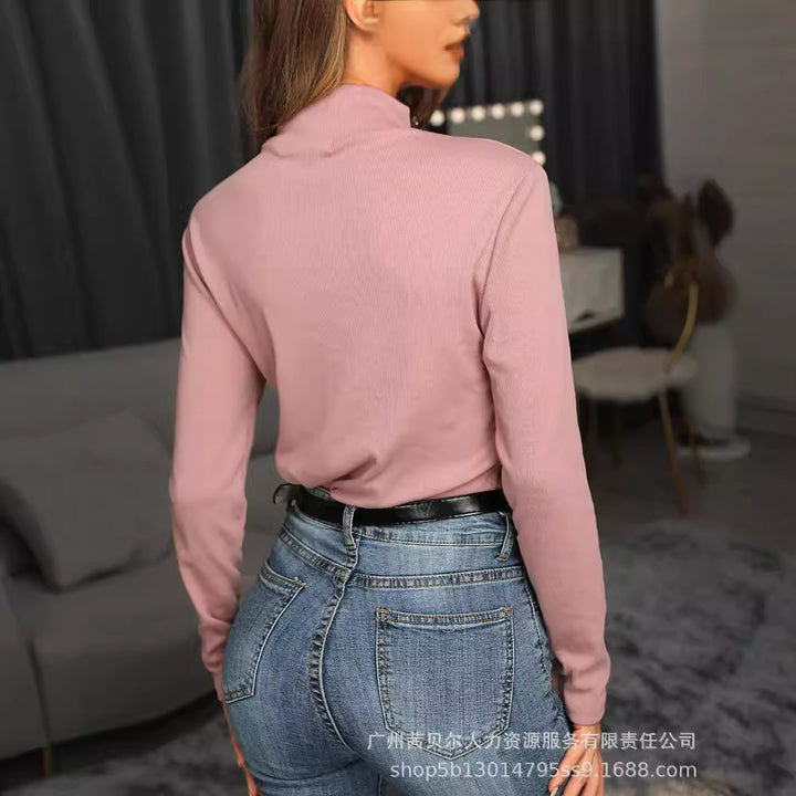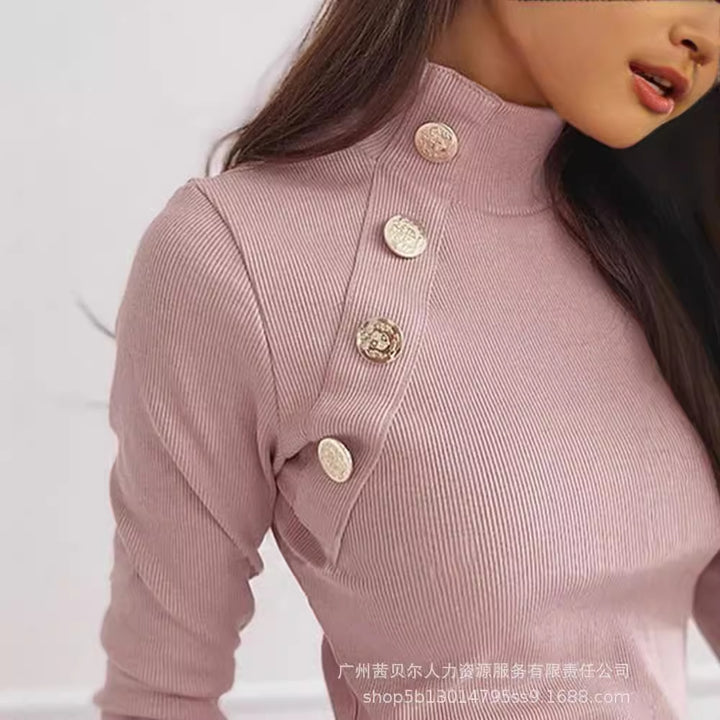 PACC1860 European and American new big button knitted turtleneck bottoming shirt