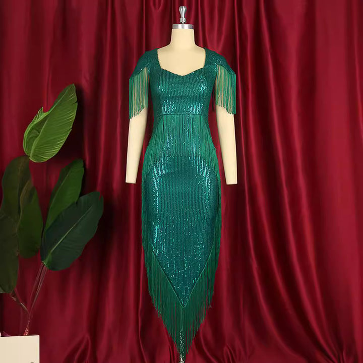 Party dress dress 2023 new annual meeting banquet temperament irregular sexy fringed sequin dress, female