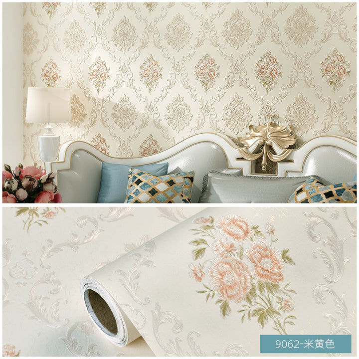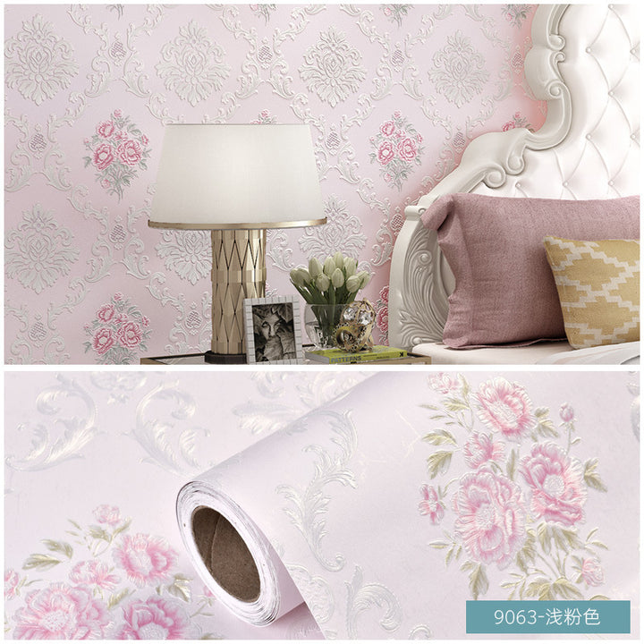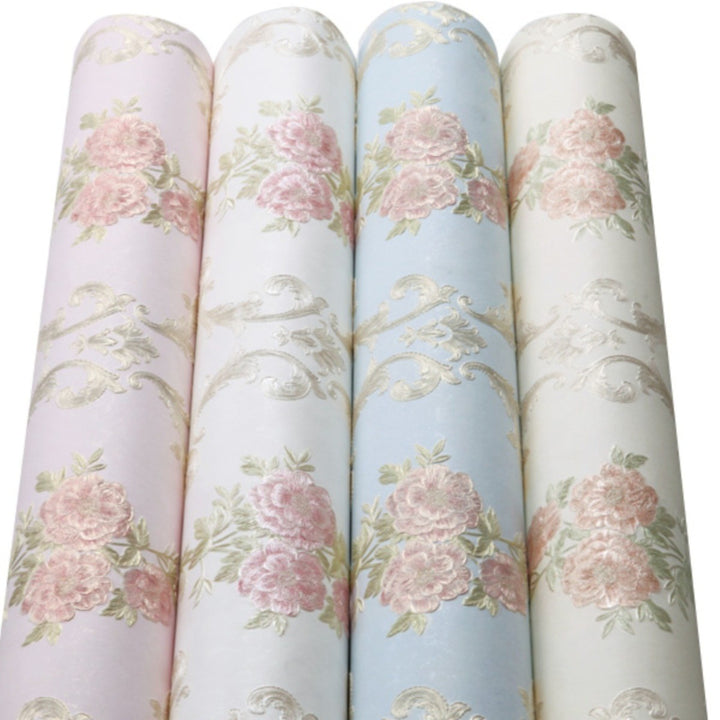 Pastoral 3D self-adhesive wallpaper fine-pressed non-woven fabric bedroom decoration sticker living room three-dimensional TV background wall wallp...
