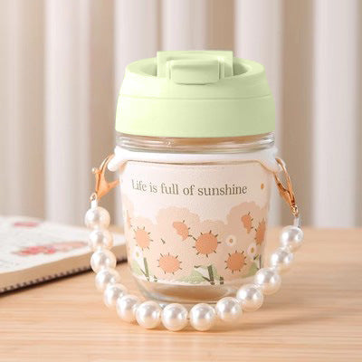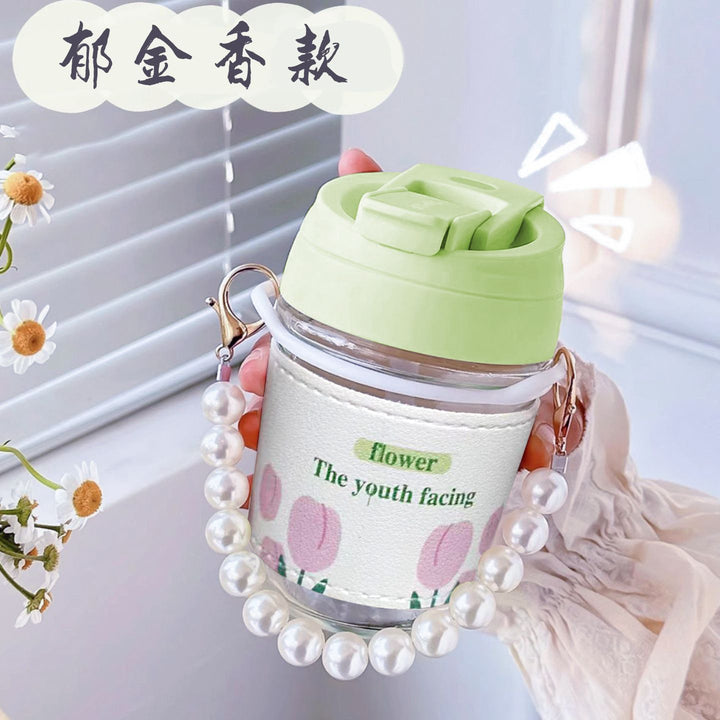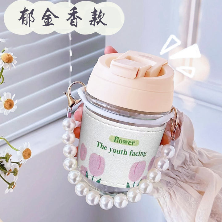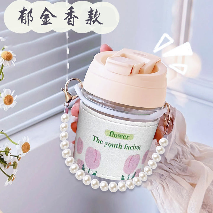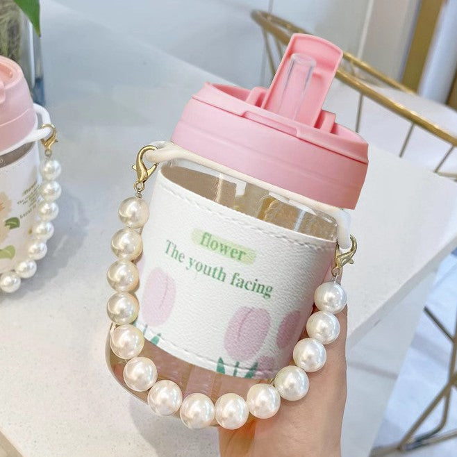 Pearl Cup Glass High Value Water Cup Customized Straw Cup Coffee Cup Double Drinking Cup Prem...
