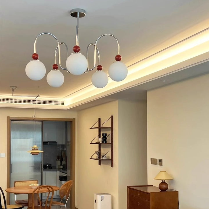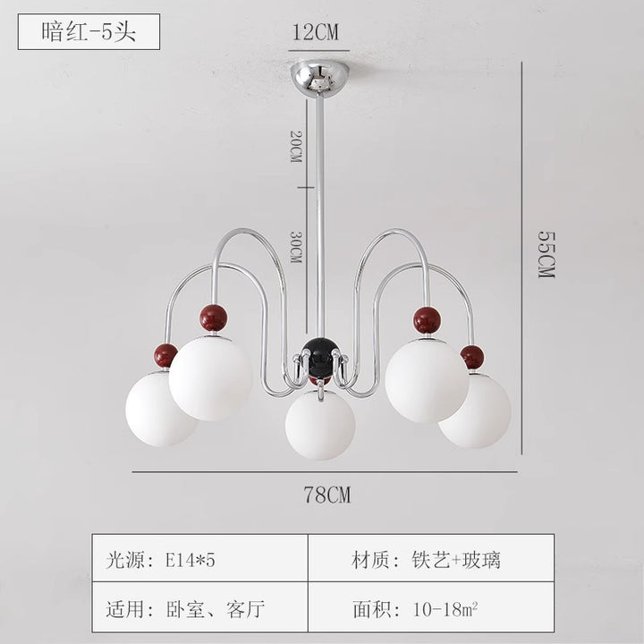 Pearl red ball medieval magic beans French cream style living room chandelier simple modern Bauhaus bedroom eye protection lamp