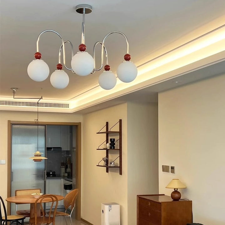 Pearl red ball medieval magic beans French cream style living room chandelier simple modern Bauhaus bedroom eye protection lamp