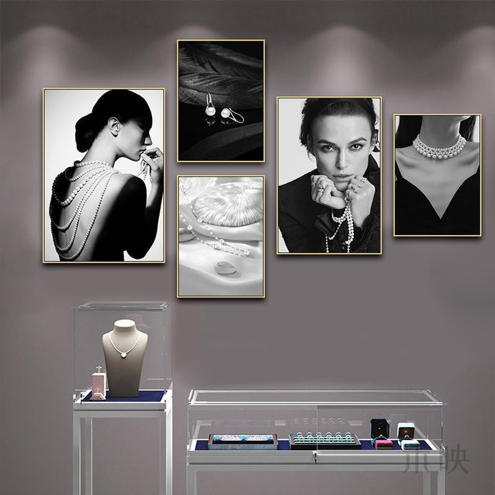 Pearl store high-end decorative paintings, jewelry store display wall paintings, luxury store high-end jewelry murals