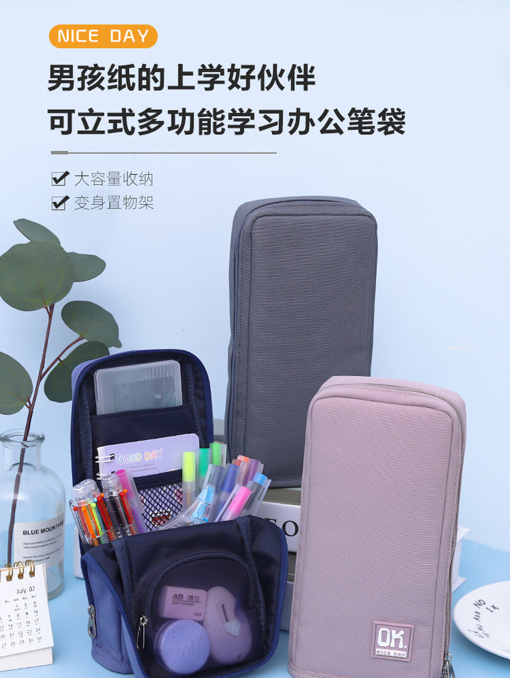 Pencil bag custom simple large-capacity stationery bag large-capacity canvas stationery bag vertical pencil case