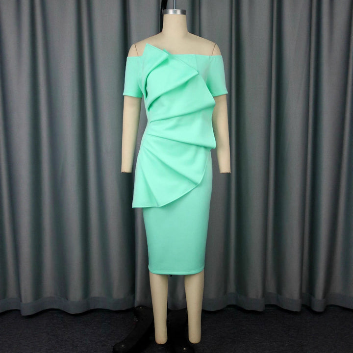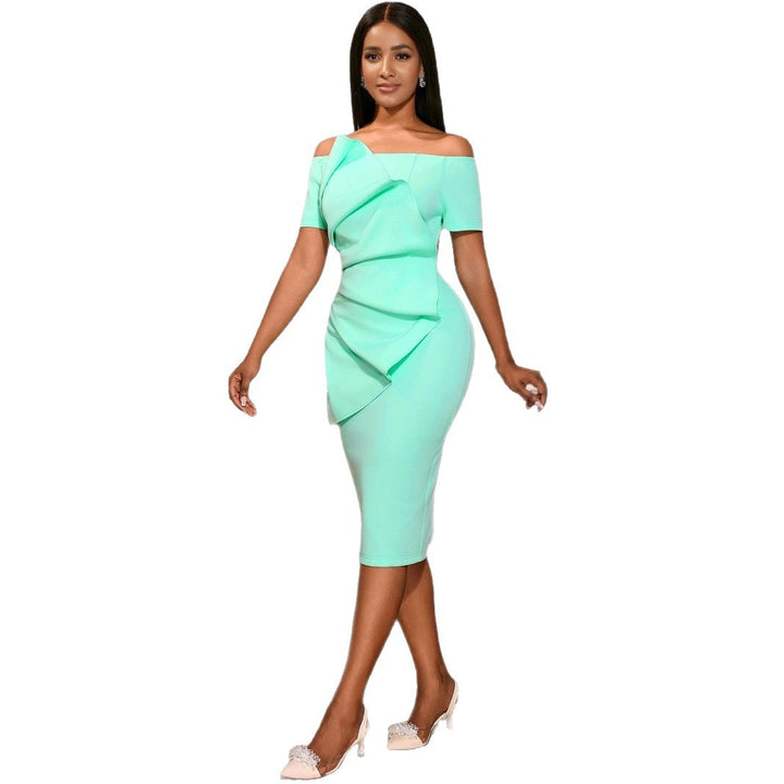 Personality pleated ruffle edge off-the-shoulder sexy dress, high waist temperament elegant hip-wrapped party evening dress dress