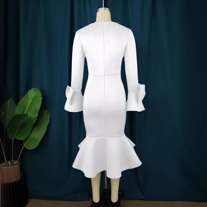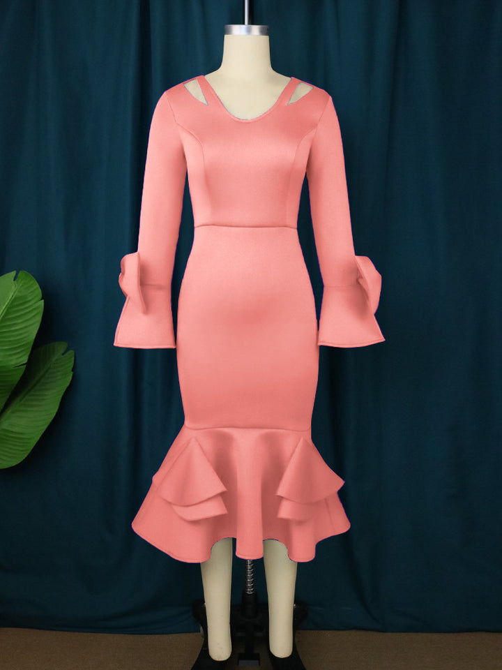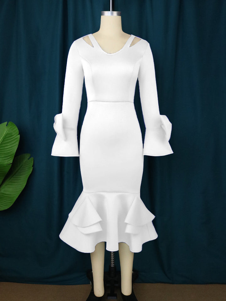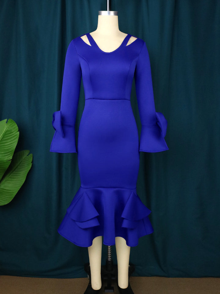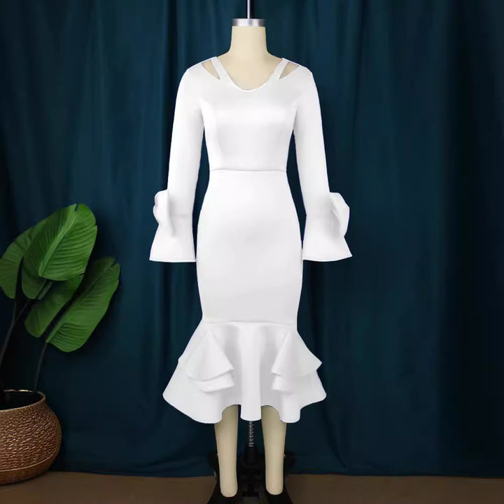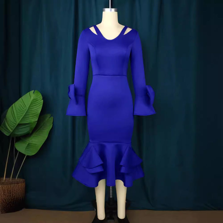 Personalized hollow collar sexy big skirt dress, new flared sleeve fishtail dress bodycon dress