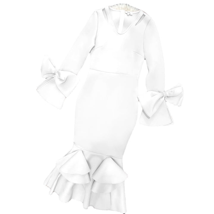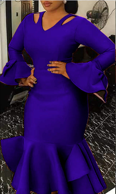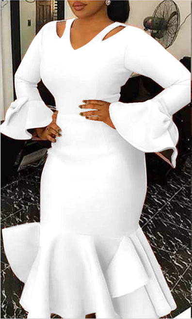 Personalized hollow collar sexy big skirt dress, new flared sleeve fishtail dress bodycon dress