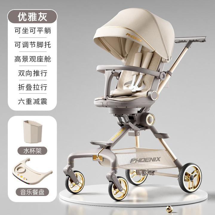 Phoenix baby walking artifact can sit and lie down, lightweight and foldable two-way baby trolley, high landscape four wheels