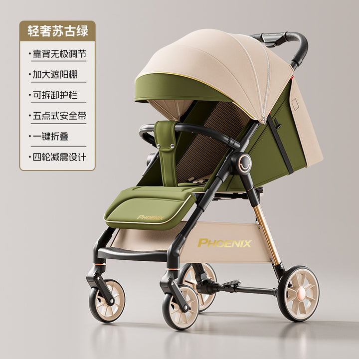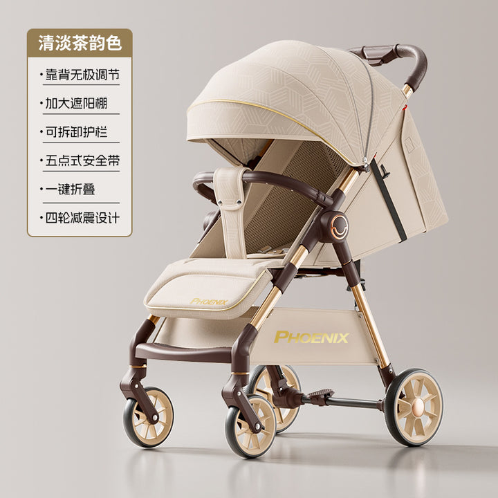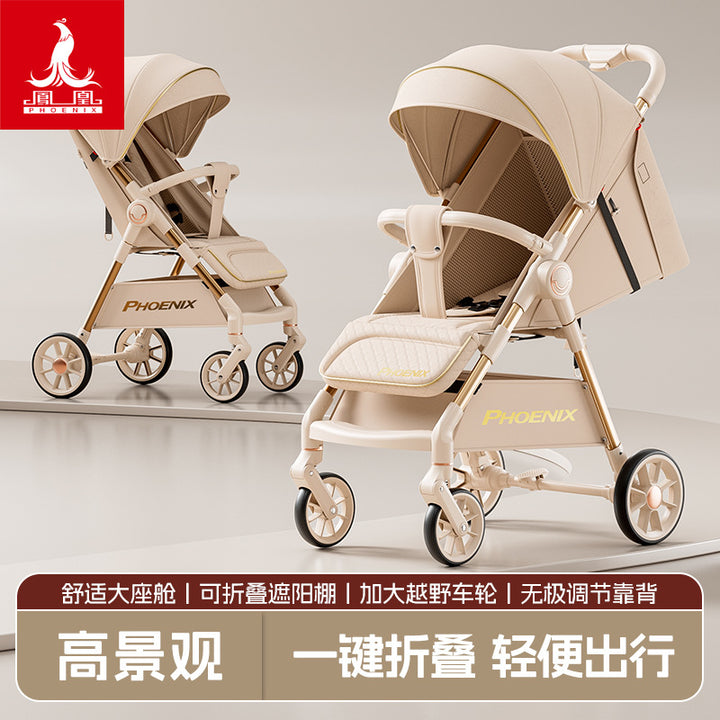 Phoenix baby walking artifact high landscape one-click folding baby walking baby one-way four-wheel shock absorber baby trolley can lie down