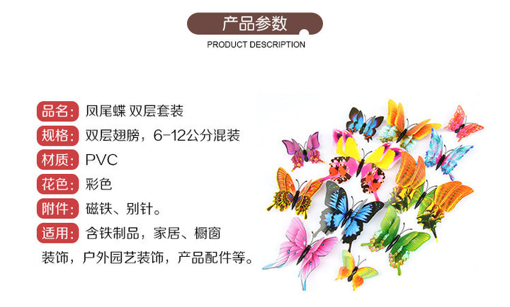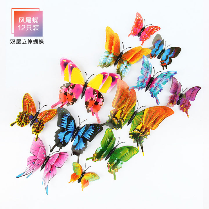 Phoenix-tailed butterfly double-layer set of 12, magnetic simulation butterfly PVC waterproof wall sticker, living room butterfly sticker can be re...