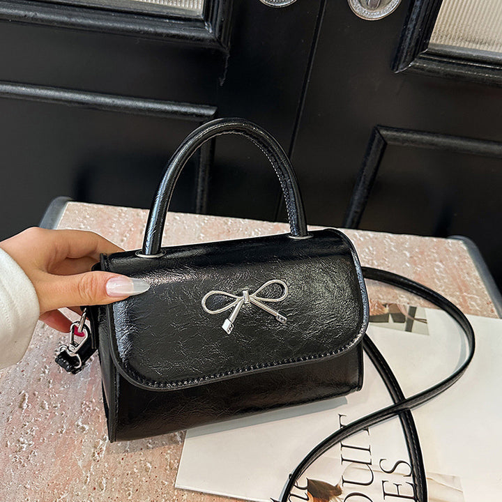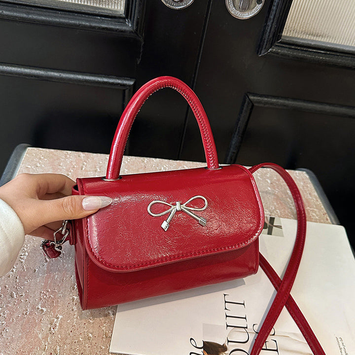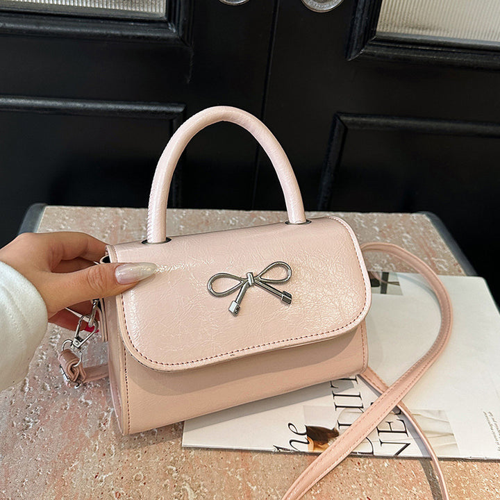 Pink portable bow bag women's 2025 new summer shoulder messenger bag niche fashion cute small square bag