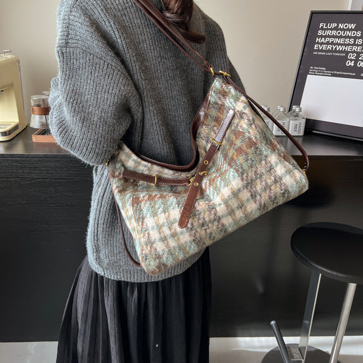 Plaid bag women's Korean version autumn and winter fashion backpack 2025 new niche high-end foreign-style messenger tote bag