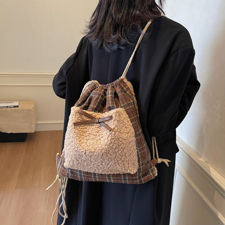Plaid work double shoulder schoolbag women's lazy wind thickened large capacity backpack morning eight leisure college fitness bag bundle mouth
