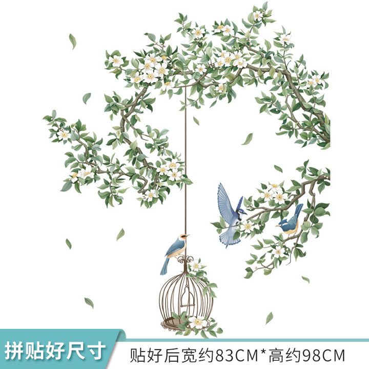 Plant flower birdcage wall sticker bedroom sofa background wall decoration sticker pastoral w...