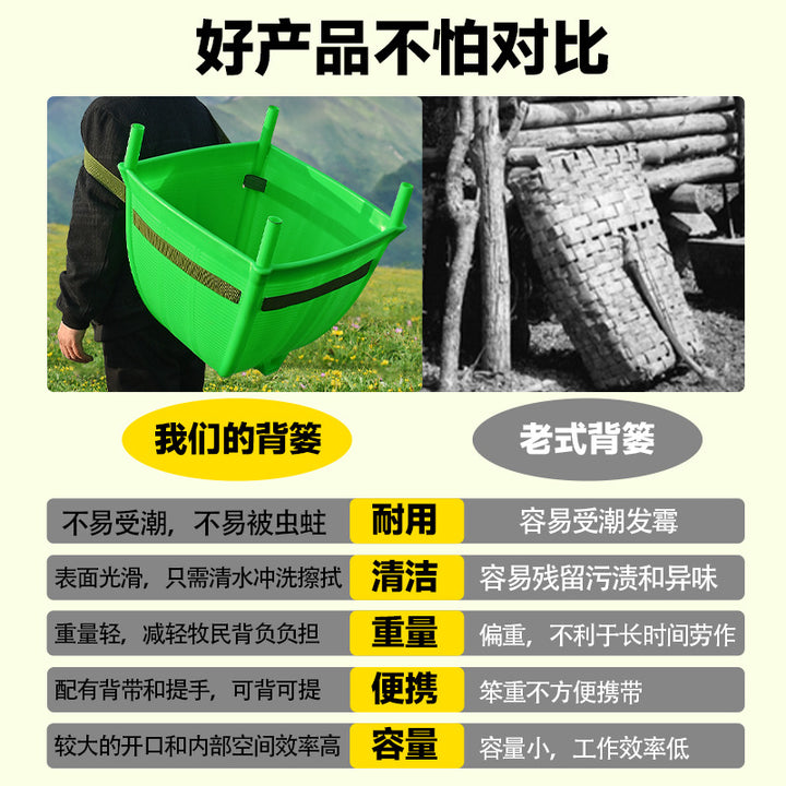 Plastic back basket, non-leaking adult glue back basket, imitation bamboo back basket, picking mushrooms to go to the market to buy vegetables, fru...