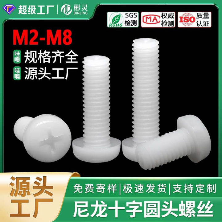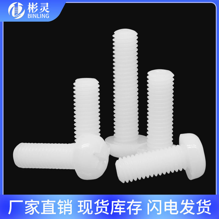 Plastic round head nylon screw cross groove pan head white machine screw PA66 plastic insulation bolt M2-M8