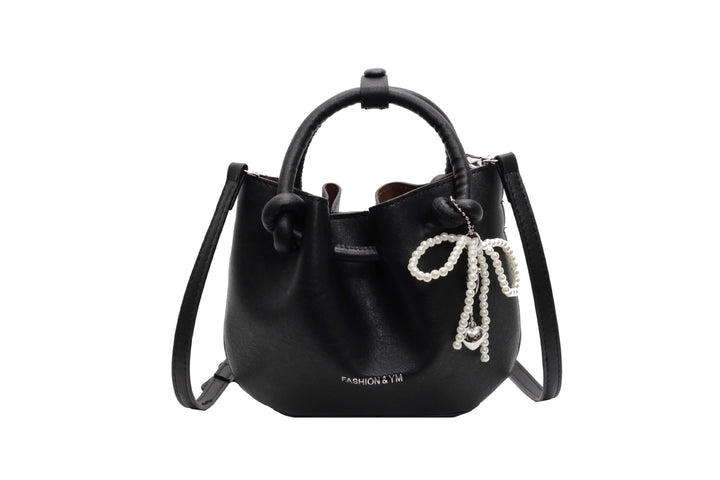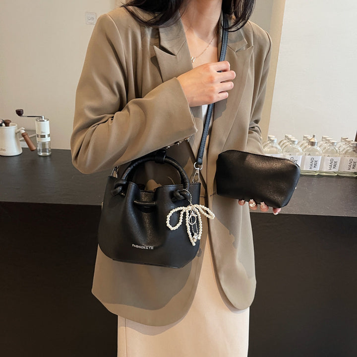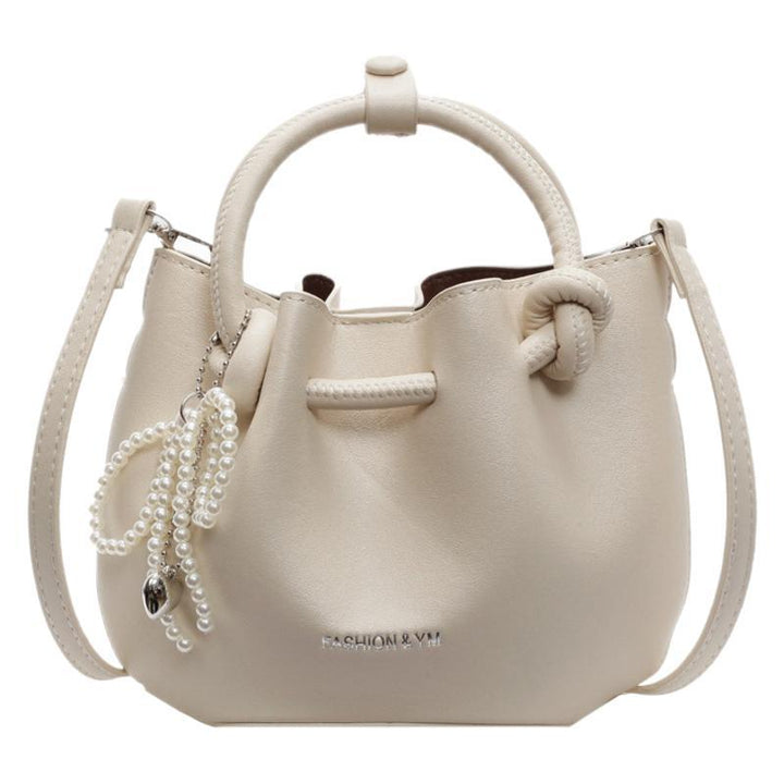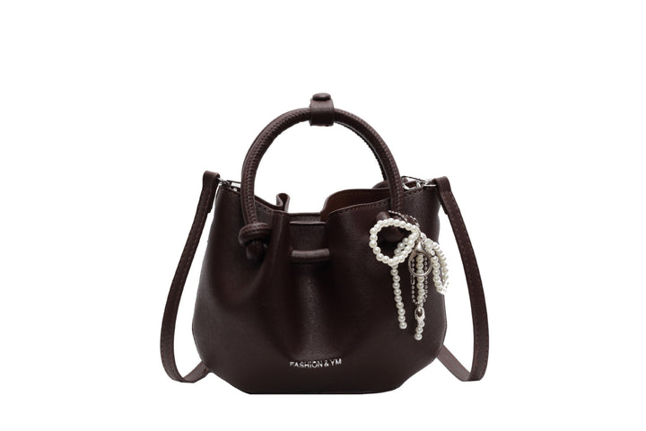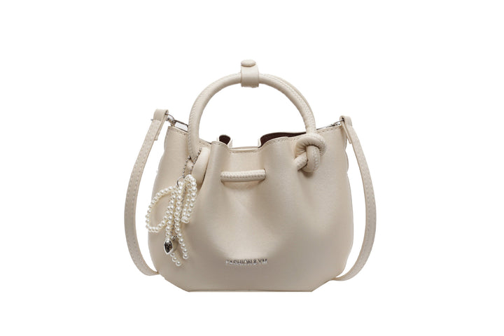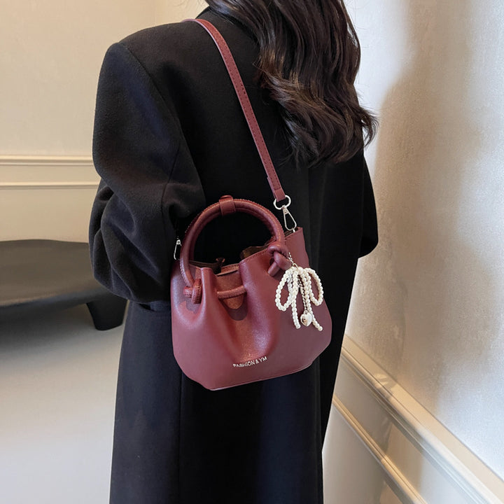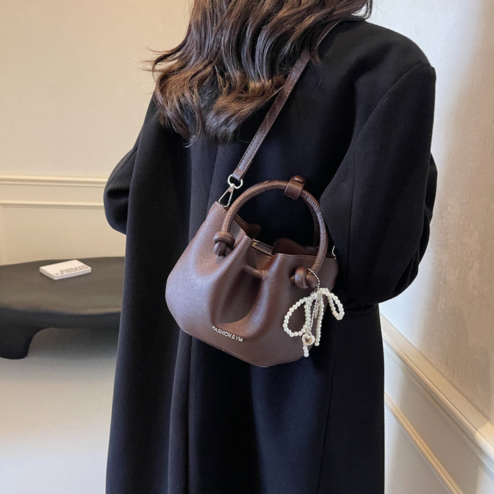 Pleated small bag women's 2025 new fashion portable shoulder bag simple solid color texture messenger commuter bucket bag