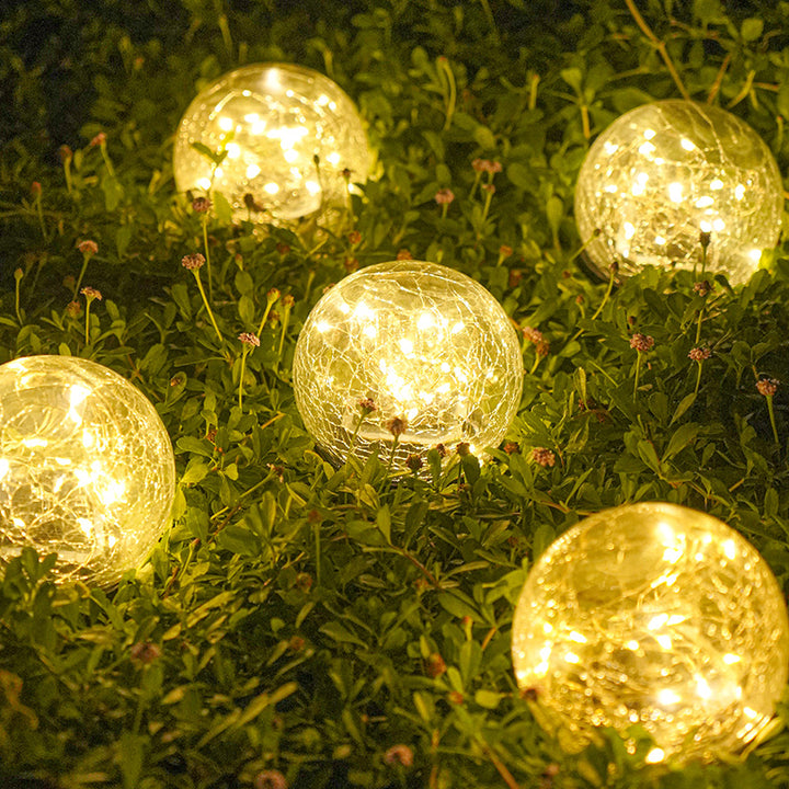 Plug-in Solar Crack Light Outdoor Christmas Glass Light Wishing Light Garden Lantern Round Ball Hanging Light Crack Light Batch