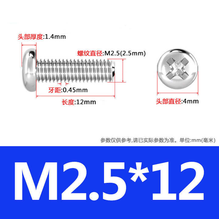 PM iron-plated nickel-plated cross round head screw Carbon steel M3 mechanical tooth screw manufacturer Cross groove semi-round head screw M4