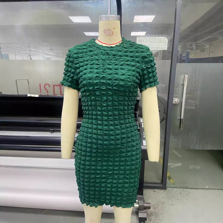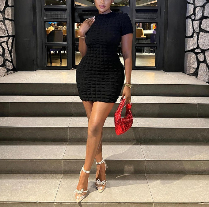 Popcorn bubble dress solid color pullover sleeveless hip skirt European and American fashion sexy women's clothing new