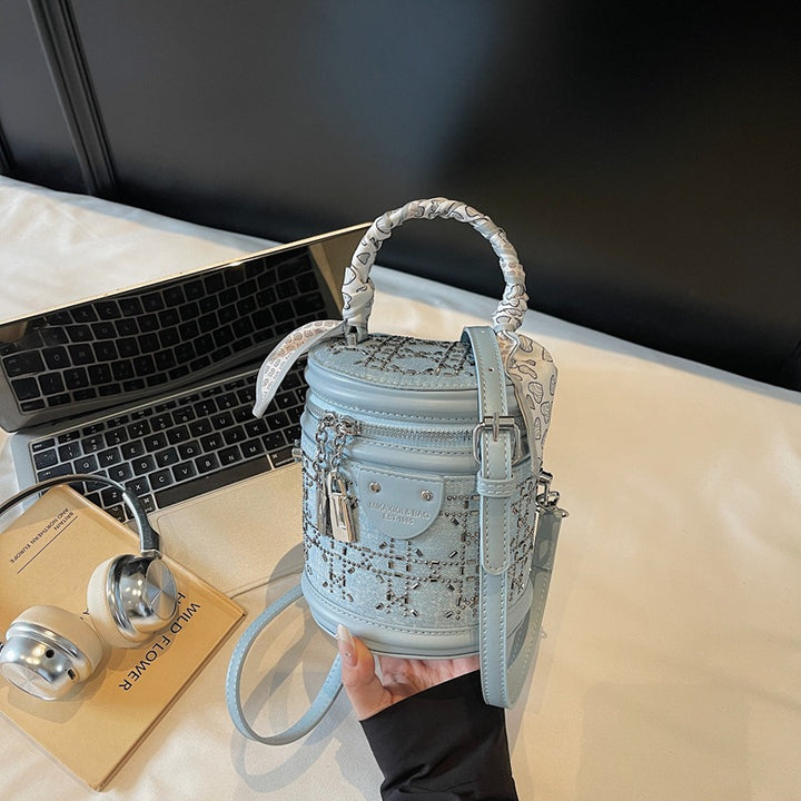 Popular exquisite out bag women 2025 new versatile messenger bag fashion niche design portable bucket cylinder bag