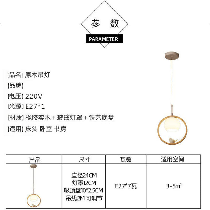Popular Nordic log bedroom bedside lamp, creative bird restaurant chandelier, single-head chandelier, bar restaurant lamp