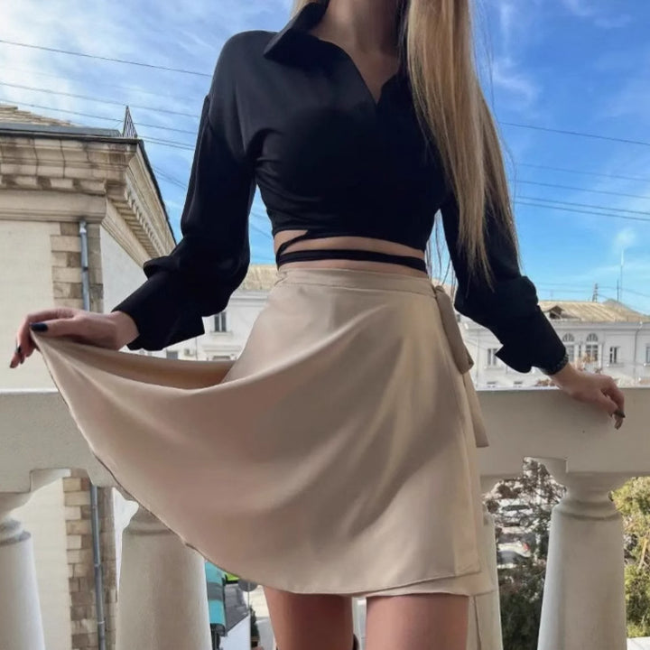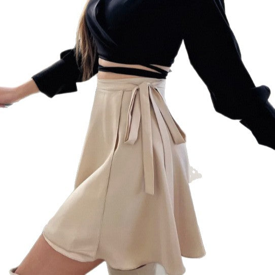 popular sweet and sexy high-waisted strappy skirt women's ballet one-piece satin short wrap skirt