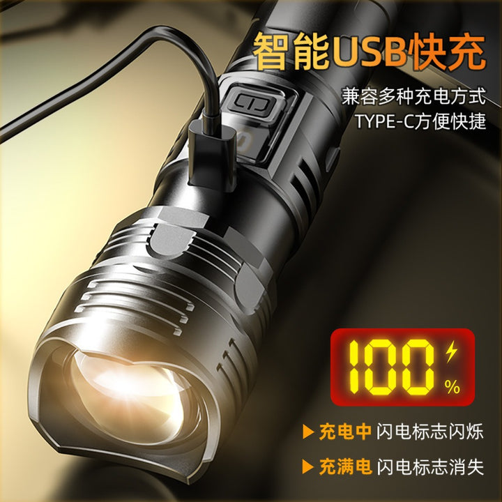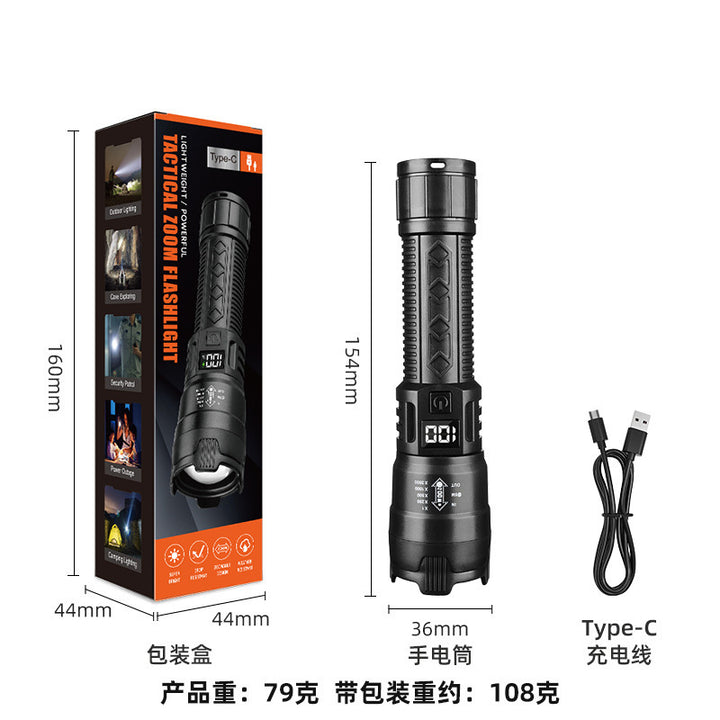Popular white laser flashlight long battery life digital display zoom flashlight outdoor mult...