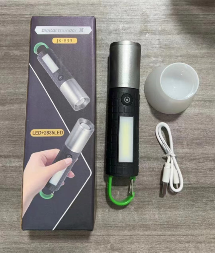 901 Flat Small Flashlight, 836白激光灯珠(手电+灯罩+充电线+彩盒), 836P50灯珠(手电+灯罩+充电线+彩盒), JX-839(手电+灯罩+充电线+彩盒), 836全塑料款(手电+灯罩+充电线+彩盒) |