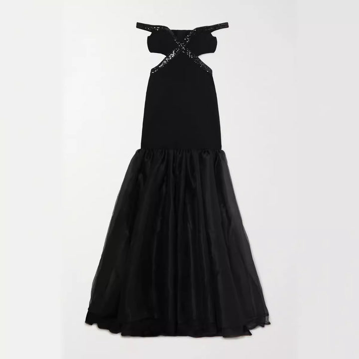 popular women's clothing one-word shoulder fishtail mesh bandage evening dress fashion high-end dress women