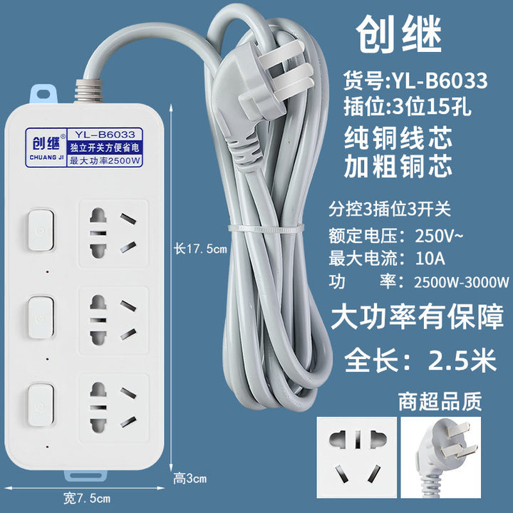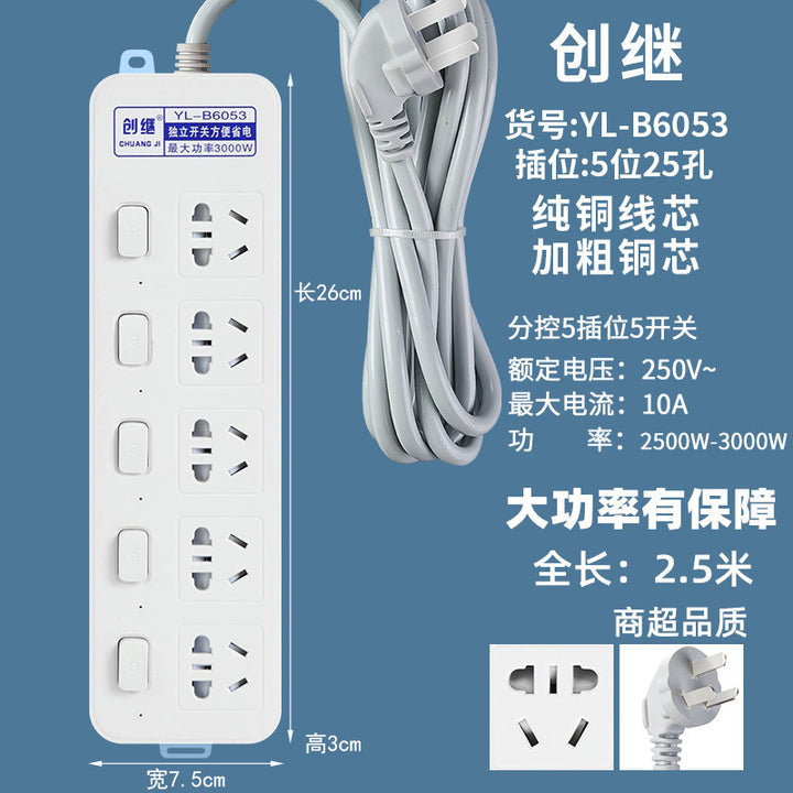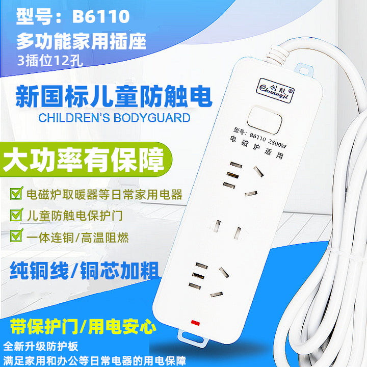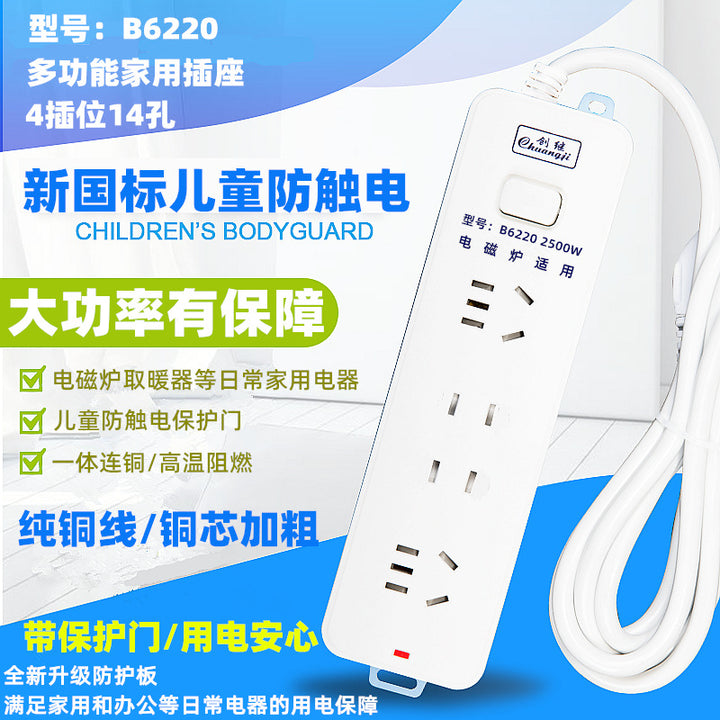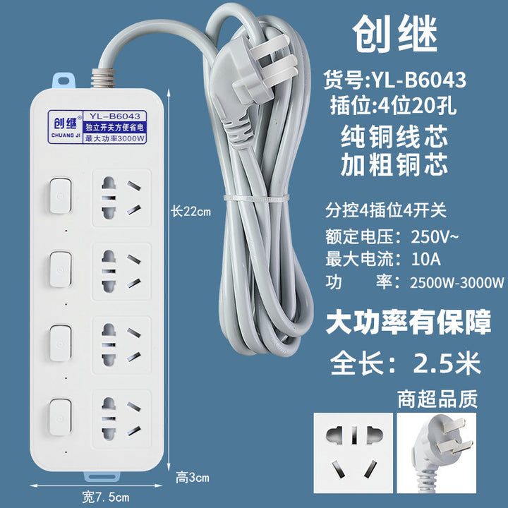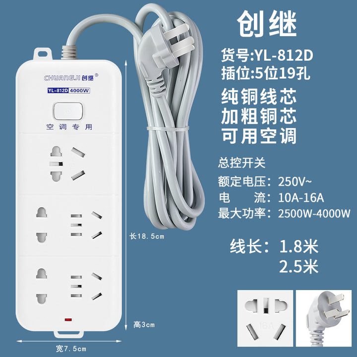 Porous socket wired wholesale, household air conditioning socket, office desktop plug-in board, high-power power strip