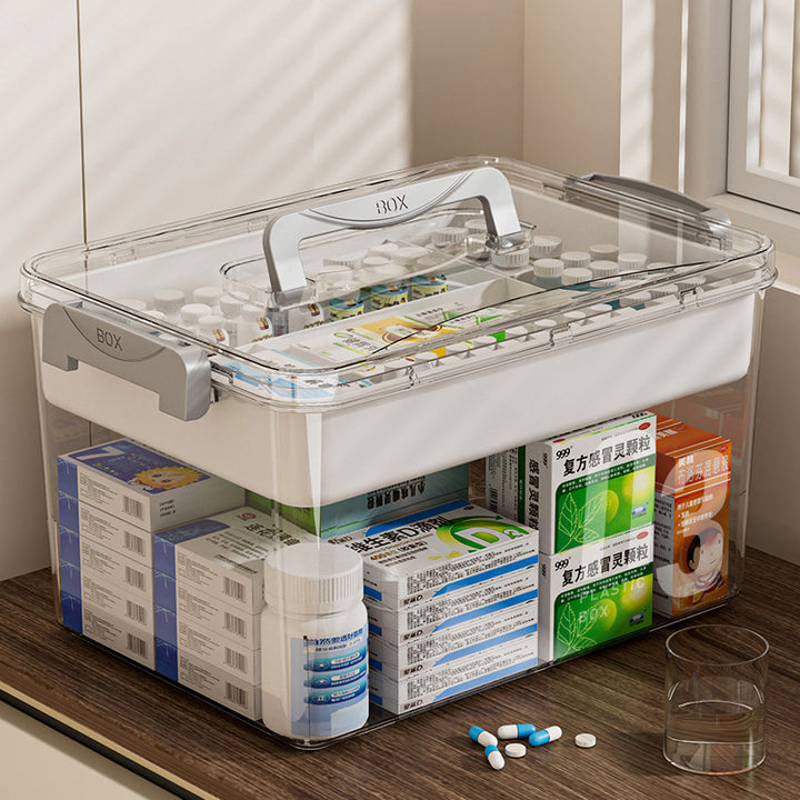 Portable multi-layer family pack, drug storage box, children's medicine, first aid medicine, medical box, thickened multi-functional storage medici...