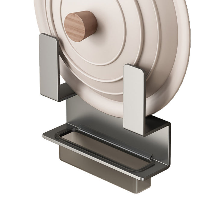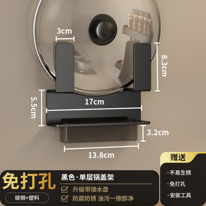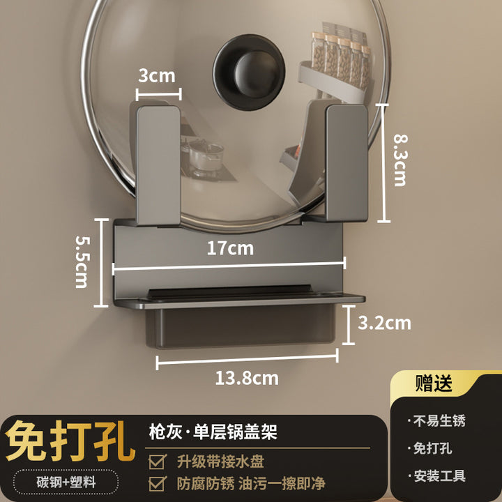 Pot lid rack, kitchen non-punching gun gray, wall-mounted with drain tray, cutting board, cutting board, household kitchen utensils storage rack