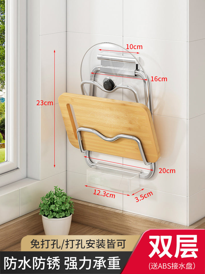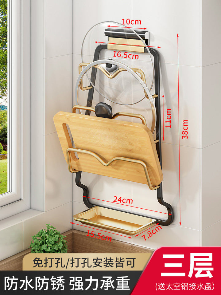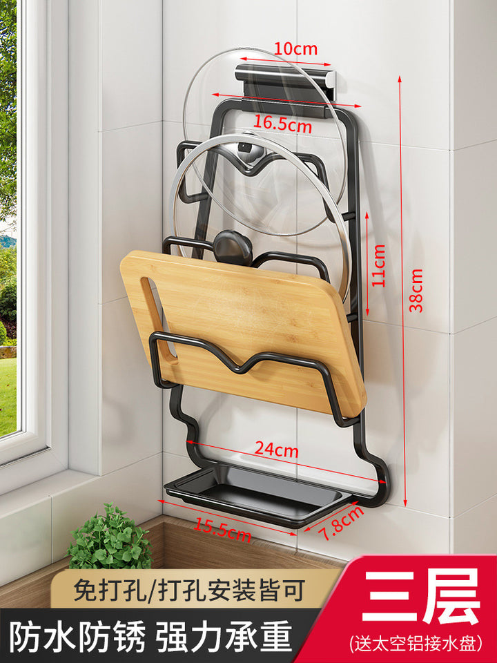 Pot lid rack Wall-mounted non-punching kitchen rack Multifunctional household storage rack Cutting board rack Multilayer cutting board rack