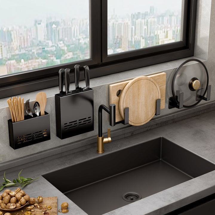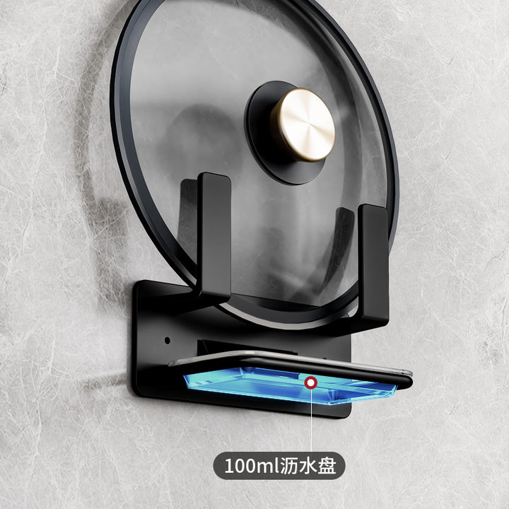 Pot lid rack with drain tray, no punching in kitchen, wall-mounted black cutting board, chopping board, cutting board storage rack