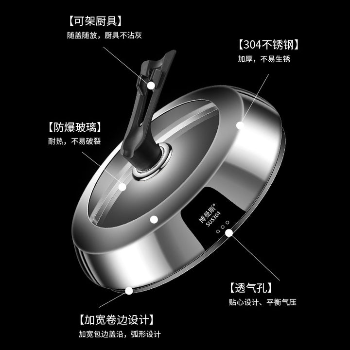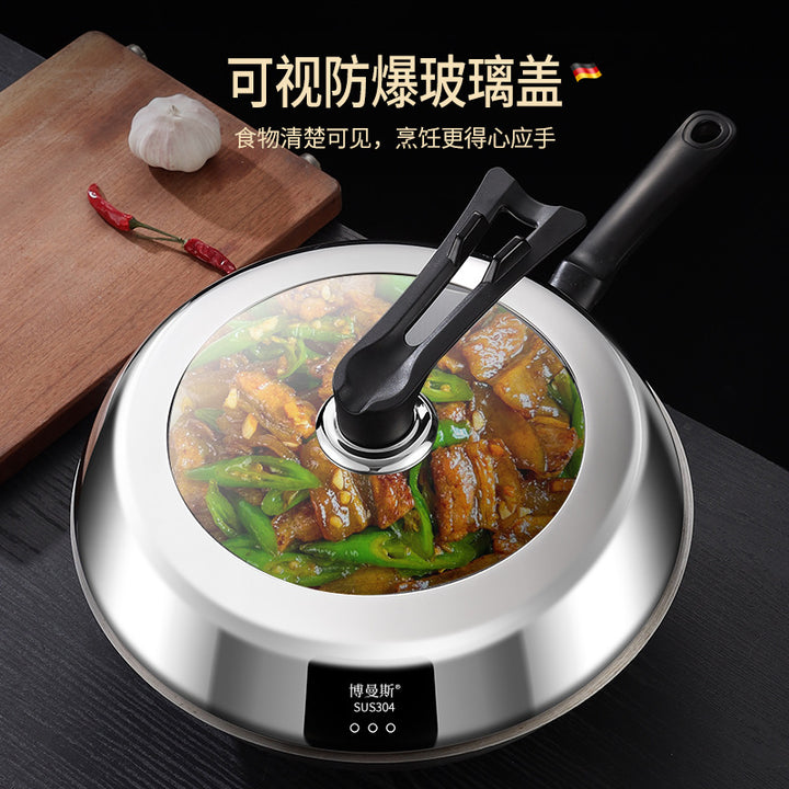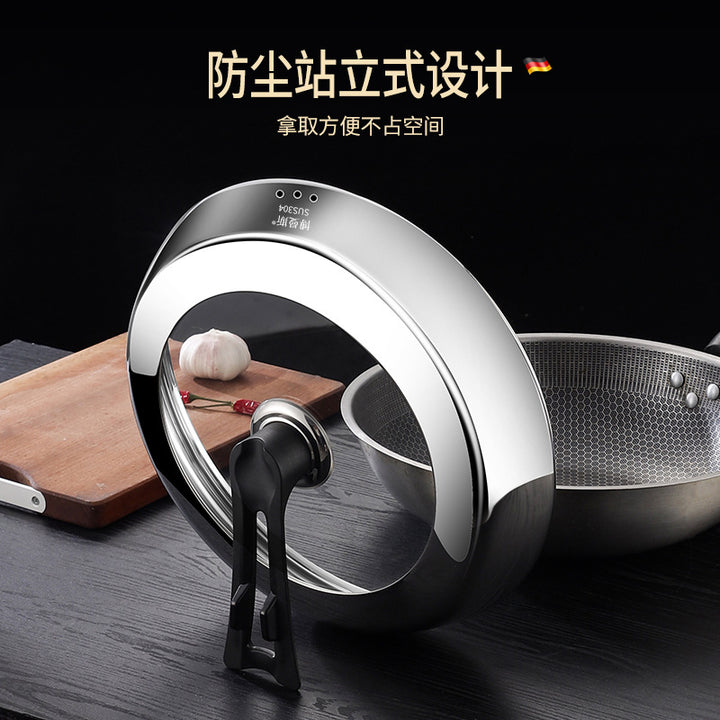 Pot lid Tempered glass lid Stainless steel round button Vertical wok lid Pan lid Household general cooking lid