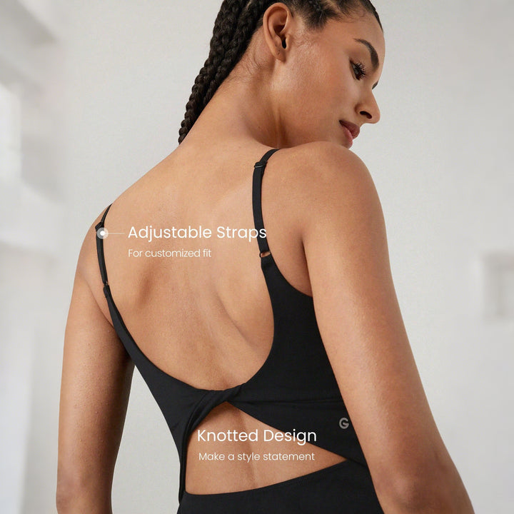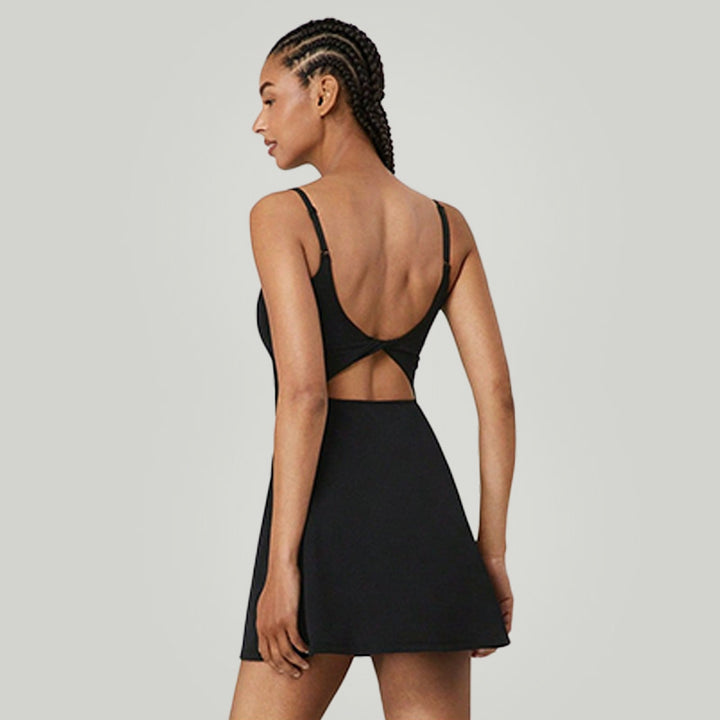 Pre-sale European and American crew neck knotted mini dress, quick-drying, moisture-wicking, hollowed-out design on the back, beautiful back and sl...