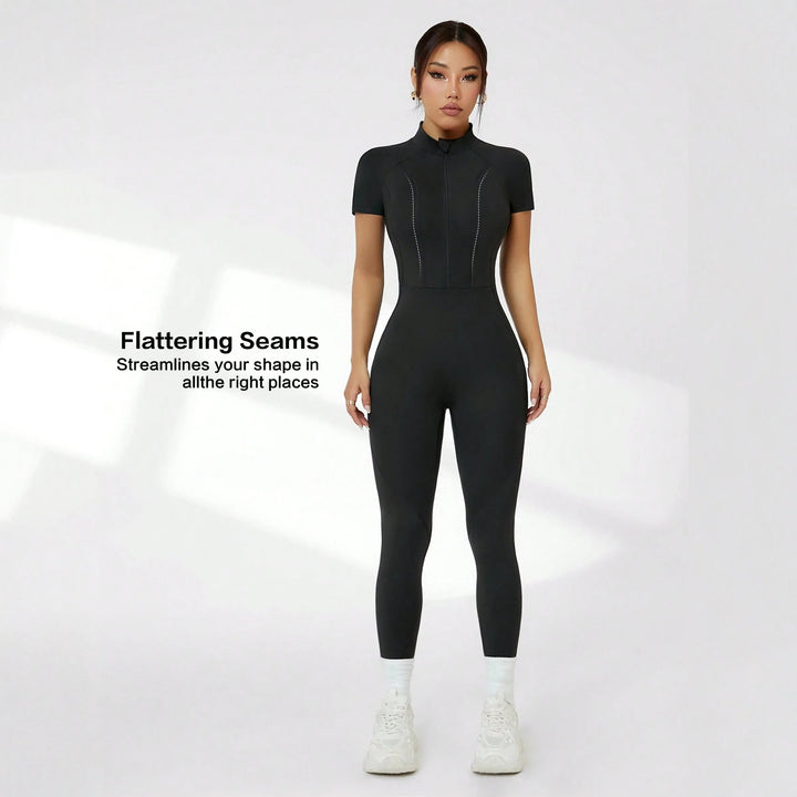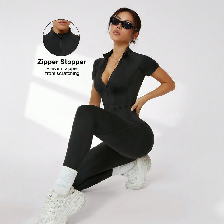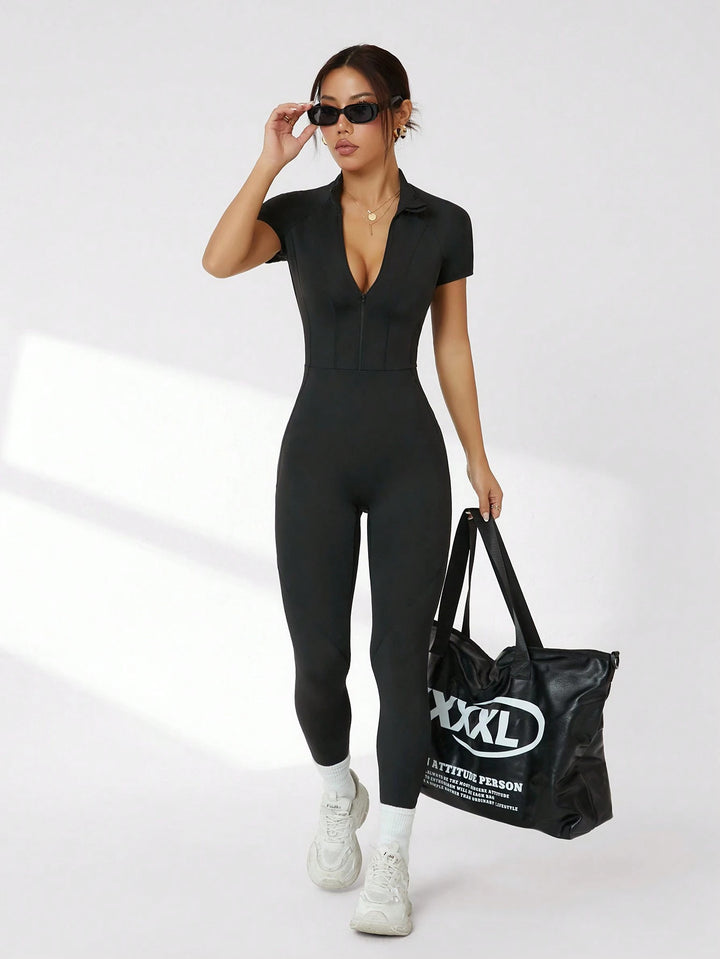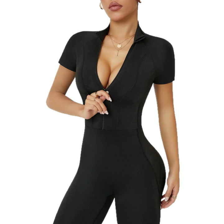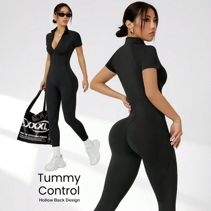 Pre-sale new black turtleneck hip lift front zipper yoga onesie slim slim onesie