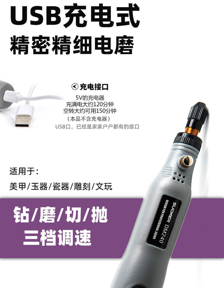Precision micro electric grinding charging mini electric drill jade engraving machine small wood carving root engraving lettering polishing