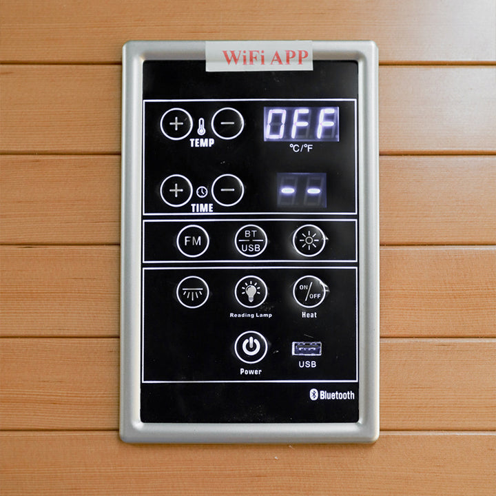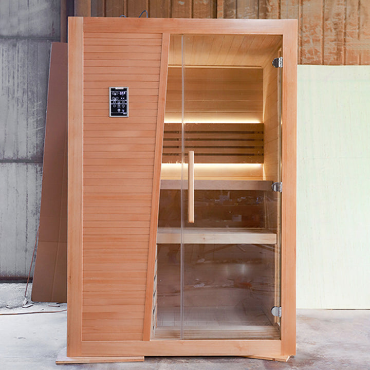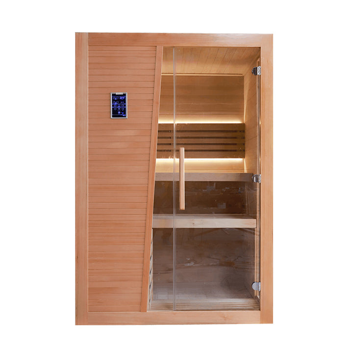 Prefabricated custom hemlock dry steam room, traditional sauna room in mobile phone control room, with intelligent control panel