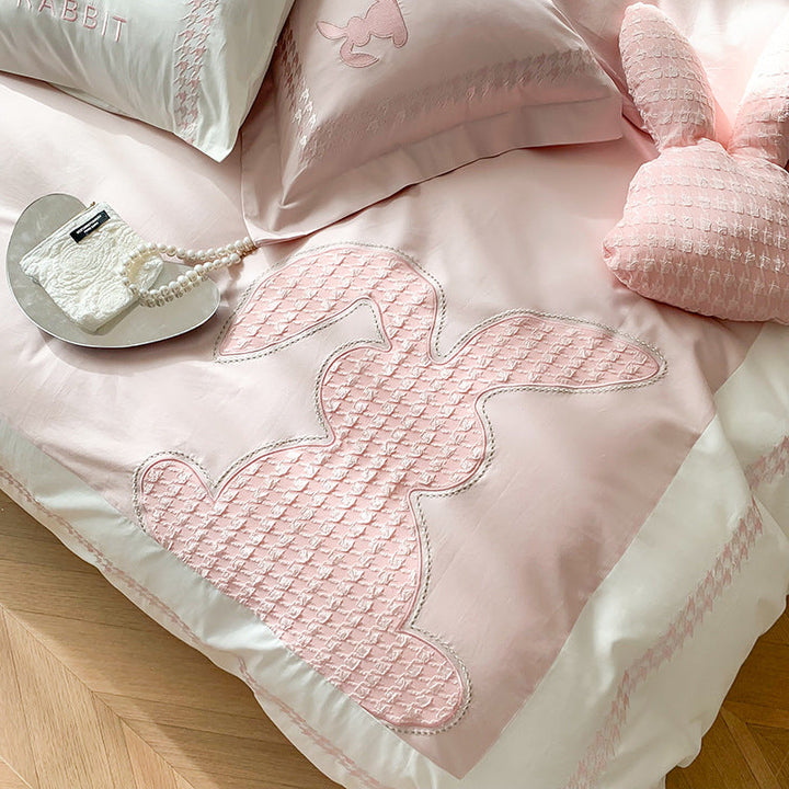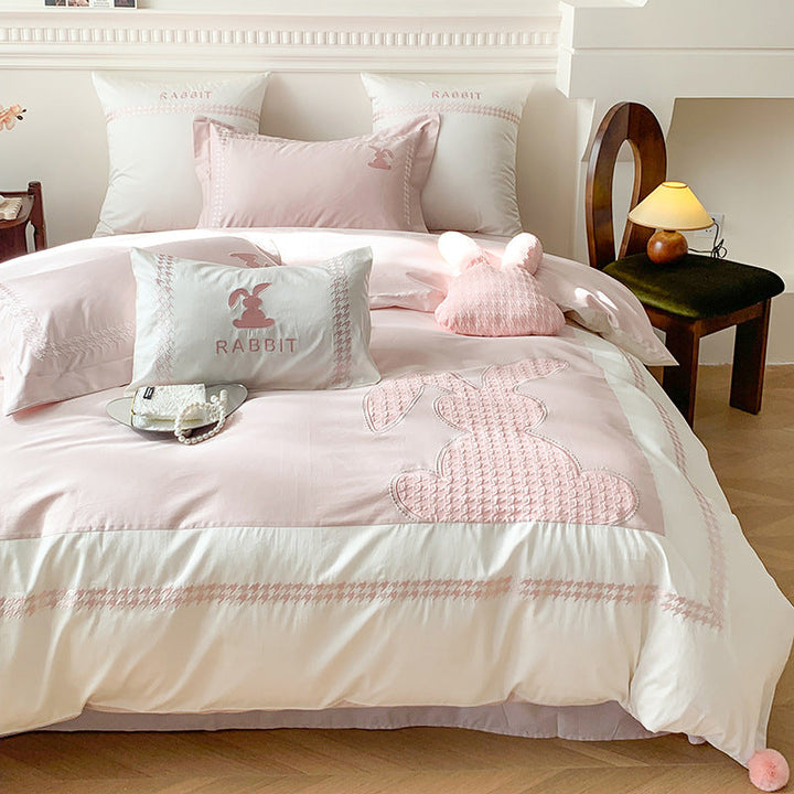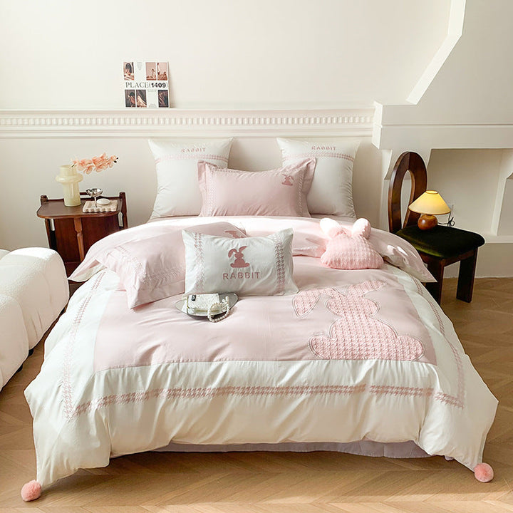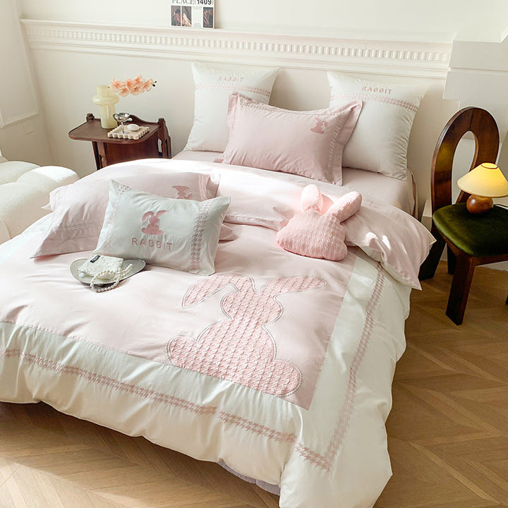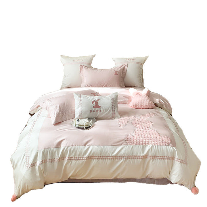 Premium bunny 100s long-staple cotton four-piece set, pure cotton embroidered quilt cover, cotton princess style bedding