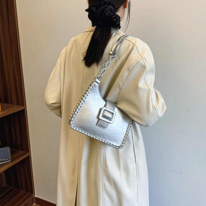 Premium contrasting color women's bag 2025 winter new versatile large-capacity commuter tote bag fashionable portable shoulder bag
