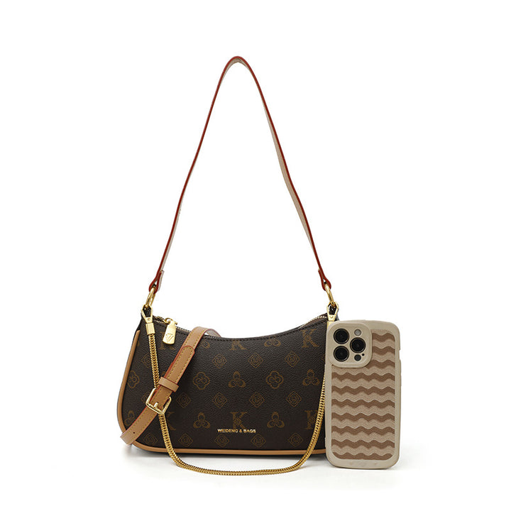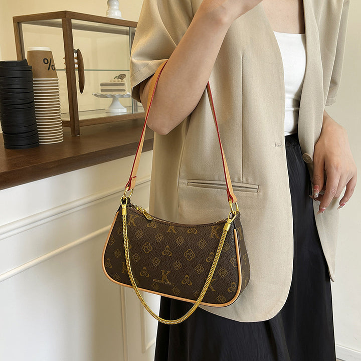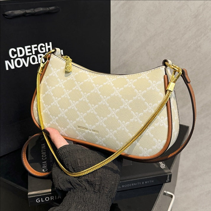 Premium light luxury printed shoulder armpit bag women's bag summer diamond chain hand bag retro fashion messenger bag