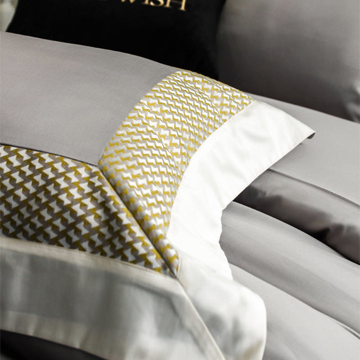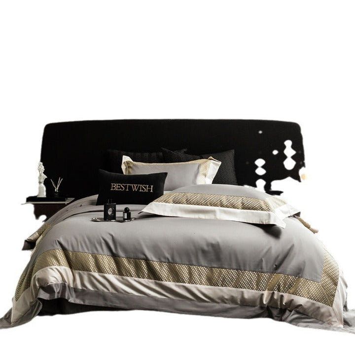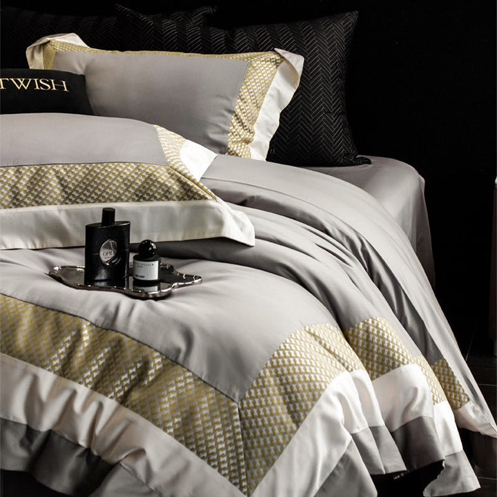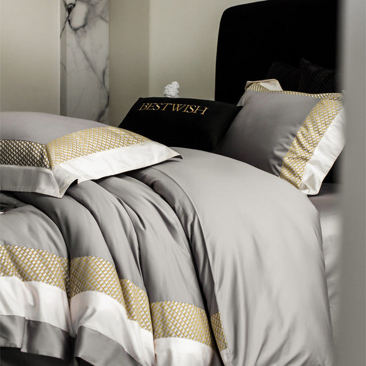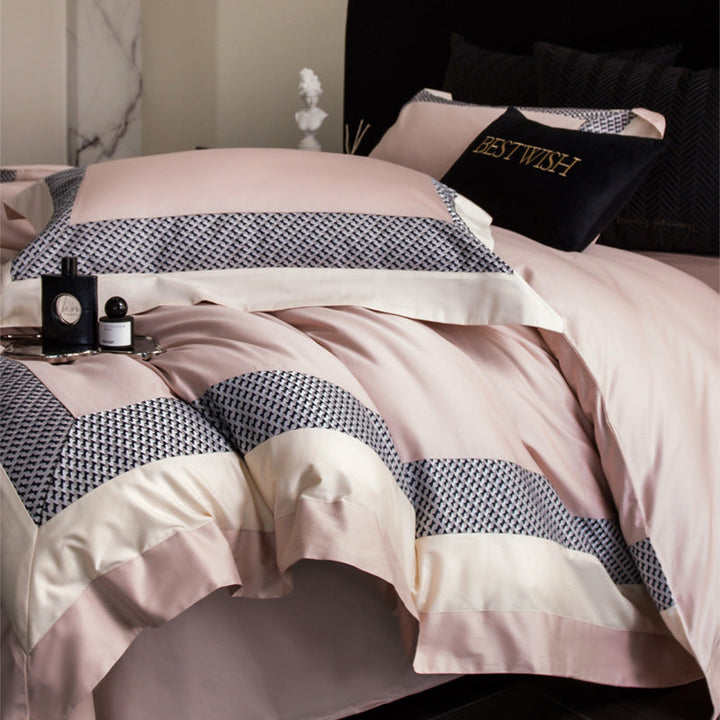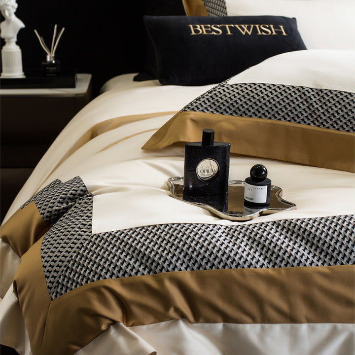 Premium modern light luxury 100s Xinjiang cotton four-piece set of simple luxury aesthetics contrasting color splicing high-end bedding
