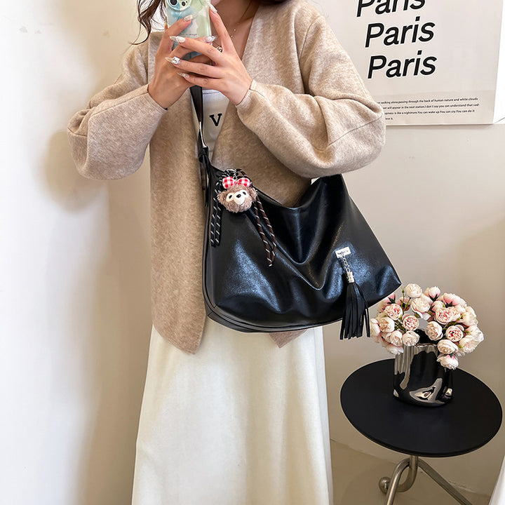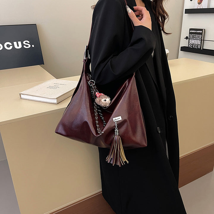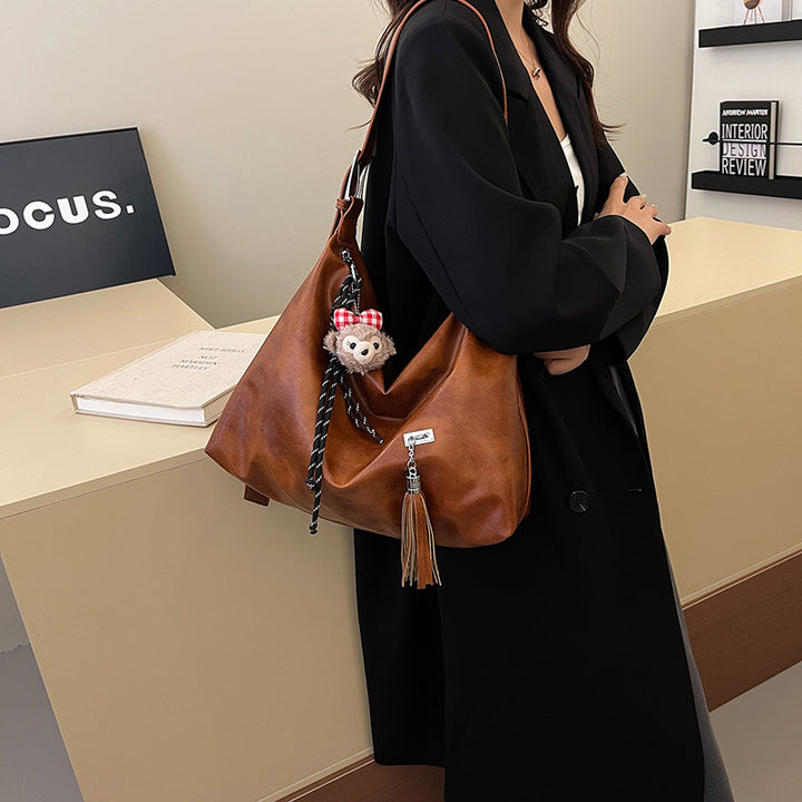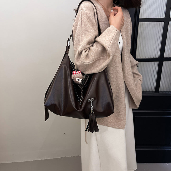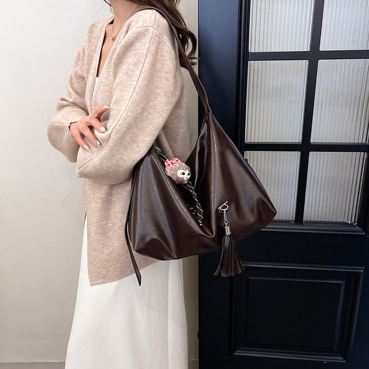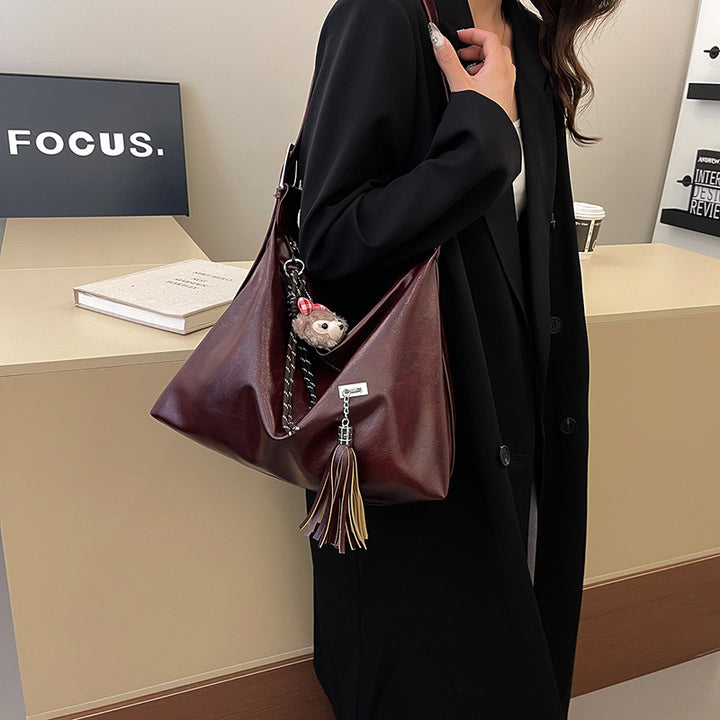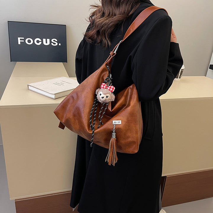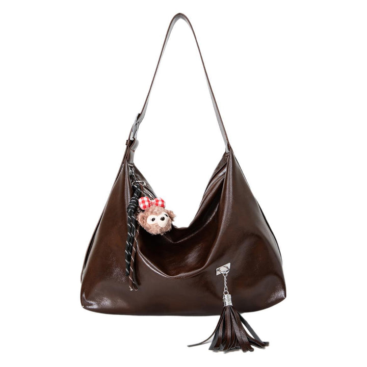Premium oil wax leather bag women's 2025 new autumn and winter brown messenger bag super fire shoulder armpit small bag