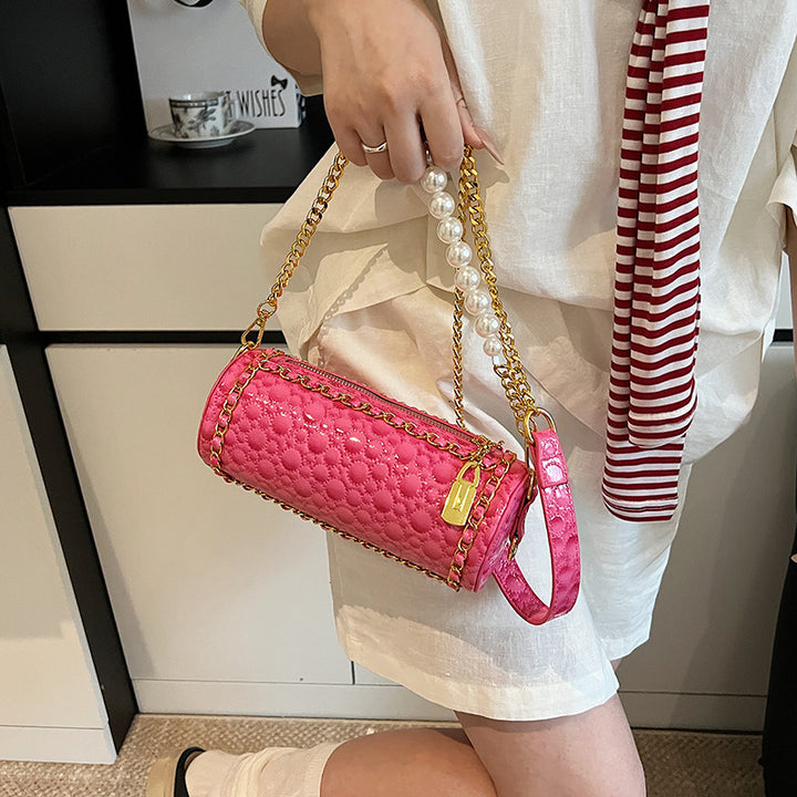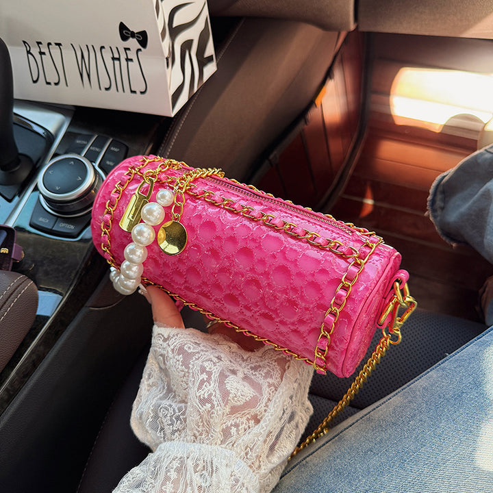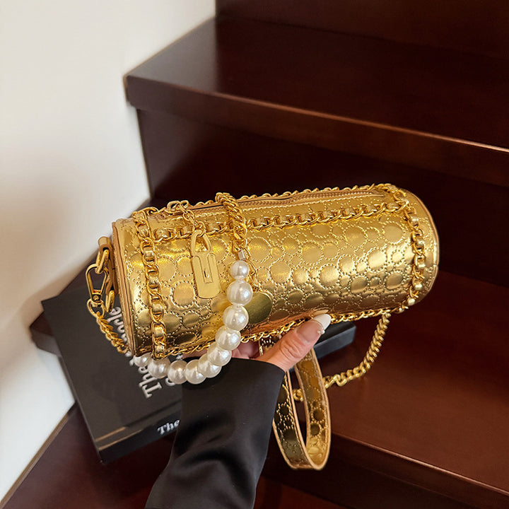Premium sense cylinder bag women's 2025 summer new versatile messenger shoulder bag golden ball adjustable chain pillow bag