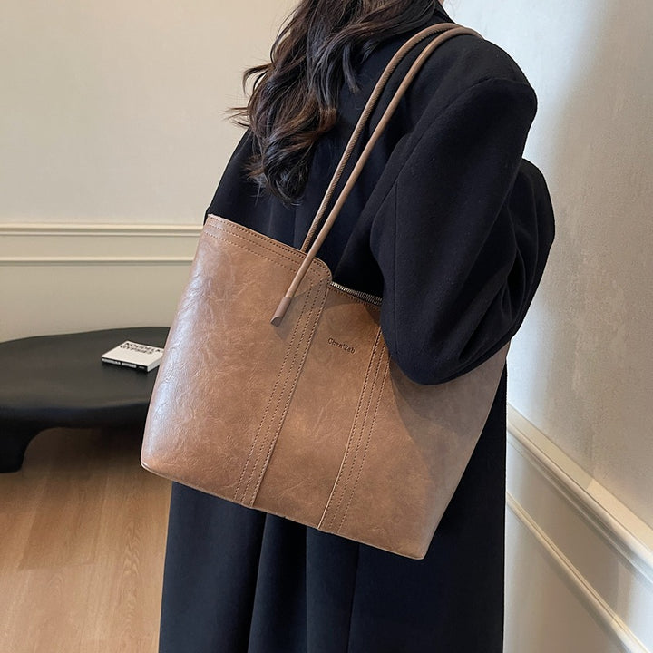 Premium sense retro large-capacity bag women's 2025 new fashion commuter bag shoulder bag popular tote bag