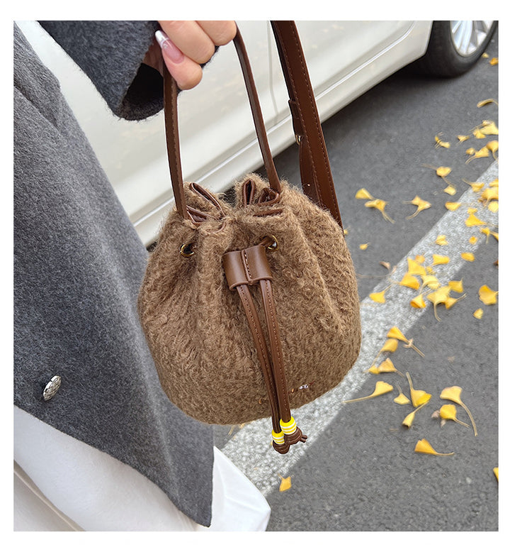 Premium texture small bag women's new fashion niche versatile woolen bucket bag custom foreign style messenger bag wholesale