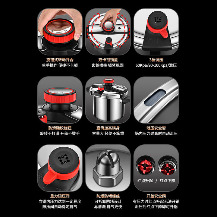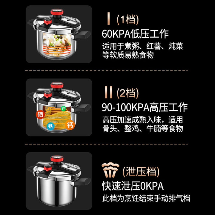 Pressure cooker, gas induction cooker rotary opening and closing pressure cooker, household 3-speed explosion-proof pressure relief stainless steel...
